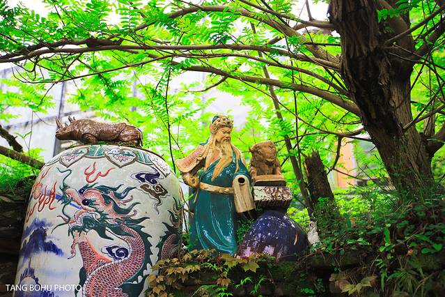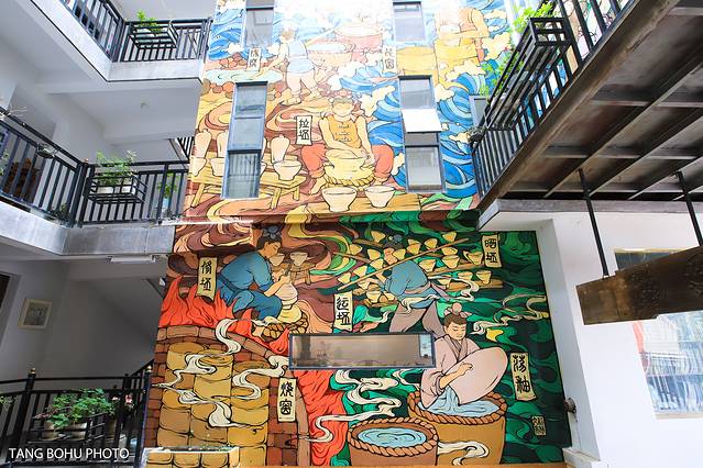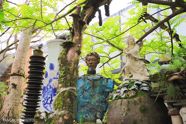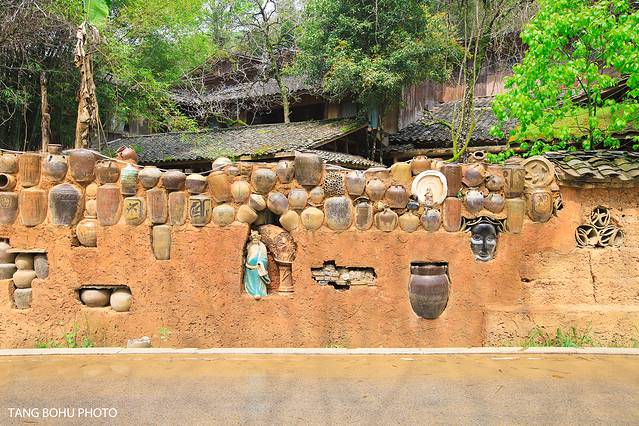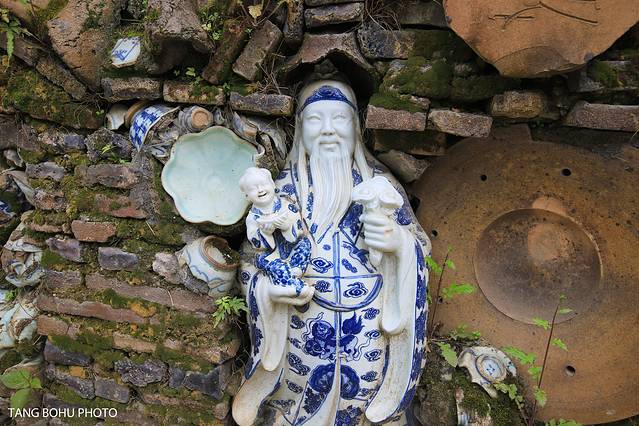 来三宝村必打卡的三宝道不可闻馆,和普通看到的美术馆不一样,这蛇胆美术馆主要陶瓷为主,展现了各种各样的陶瓷作品,最先让人看到的是位于美术馆门前的墙了,这个墙 和平 常我们看到的完全不一样。墙上有好多废弃的陶瓷,或者有瑕疵的陶瓷。这些陶瓷被重新利用起来就变成了一道美丽的风景线,你会发现很多年轻人前来这里打卡拍照。墙上有好多陶瓷制的人像,最多的就是关公了,你会发现每一个陶瓷雕像都是不一样的。