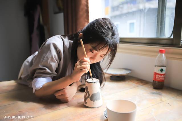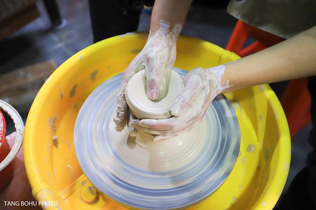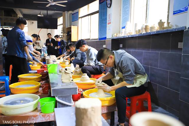 好多学生正在做陶瓷,最难的一位就是拉坯,看着学员们时儿行云流水,一气呵成。时儿泥料拿捏,妙到巅毫。全神贯注,温柔细心。整个过程更是集展示性与颠覆性,让观赏者不可思议,无不对拉坯技艺的无穷魅力叹为观止。