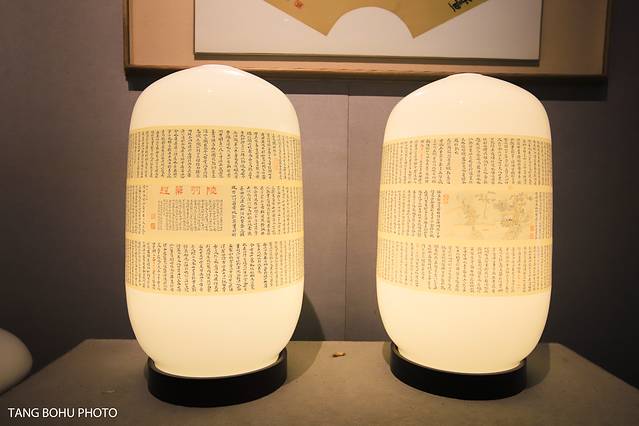 最厉害的莫过于在陶瓷上面写满了几万字,而且每一个字都清清楚楚,这要求艺术家有非常厚的工笔才能写得好这些字,在陶瓷上面密密麻麻写满了字。