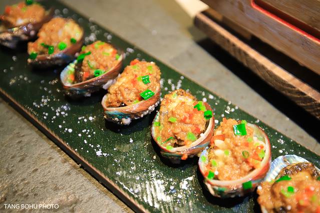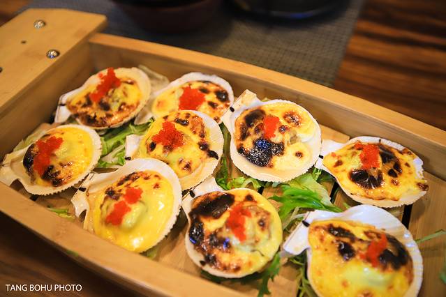 扇贝加了芝士烤,味道很独特,上面还加了鱼子酱, 和平 常加到的味道完全的不一样,这种做法扇贝吃到嘴里的那一刻有夹杂着芝士的香味和扇贝肉混合香。