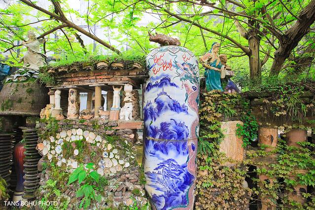 还有一个高高的陶瓷灌上面有龙,这些都是艺术家花了很多时间才完成的,有的是在烧制好后发现有瑕疵就被搬到这里来当艺术品了。