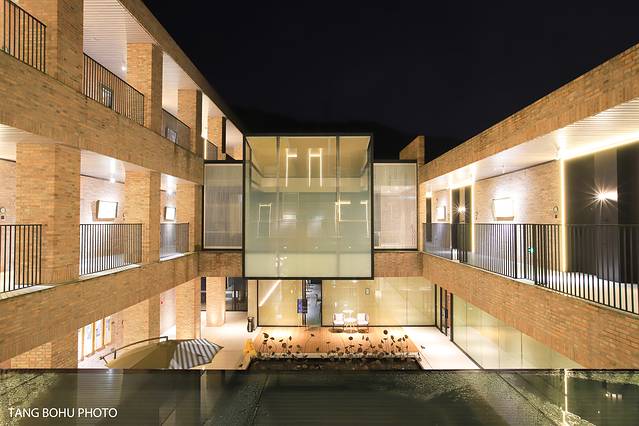 从外观看都是以赤褐色的砖结构,每一个转角都是一个过渡的展厅,这里的每一幅作品都伴着一盏光线柔亮的灯。