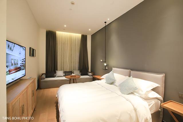 隐居景德一共有43间客房,房间的设计化繁为简,最为特别的是客房以两宋的年号为名:乾德、建隆、雍熙、端拱、景德……这些带着古色的名字,亦记录了先人们对美学鉴赏的繁盛时代。是这家酒店最为独特的设计了,我对于这种文艺的设计非常的喜欢。