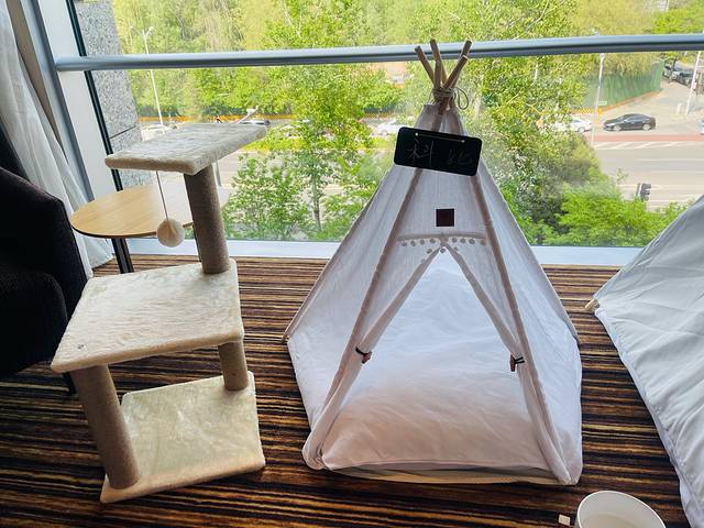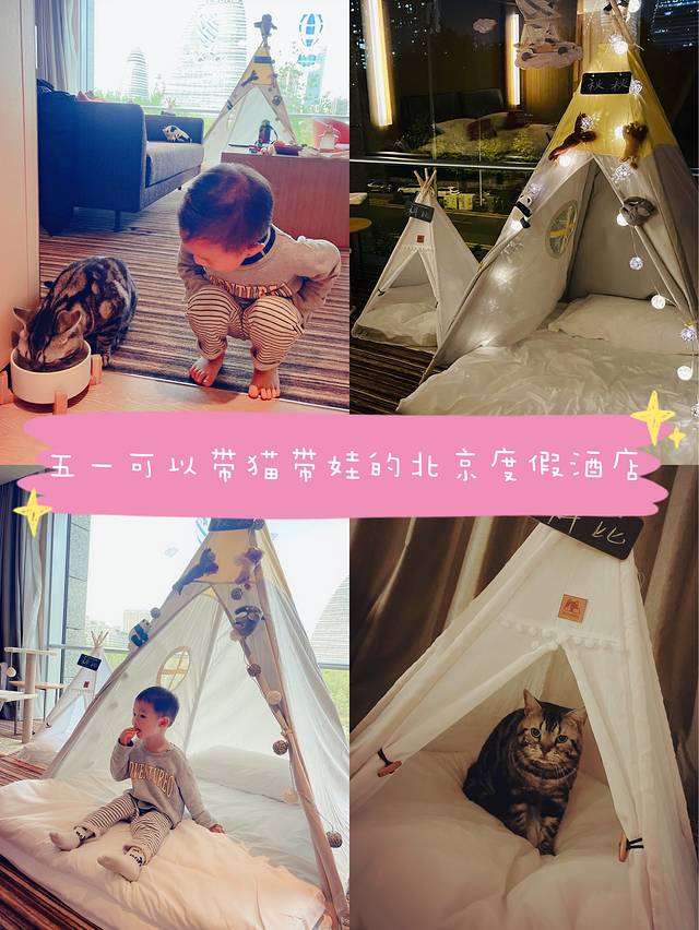 特别温馨的亲子房,给猫咪和儿子都准备了小帐篷并且很用心的写了名字,让人特别亲切
