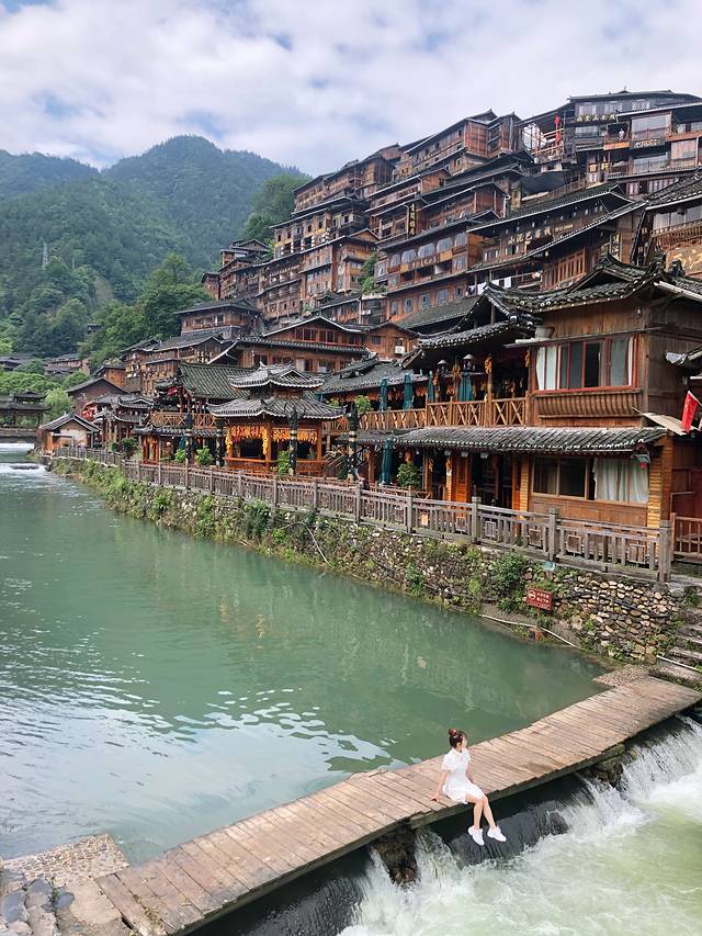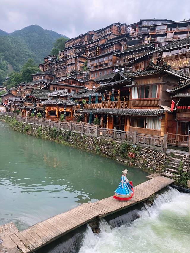 如果说凤凰古城是为女子,那镇远古镇就是一位西南小伙子,河面比凤凰要宽,两岸都是民宿酒楼,晚上坐在民宿楼下吃着烤鱼看着夜景好不惬意。