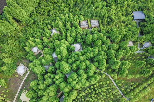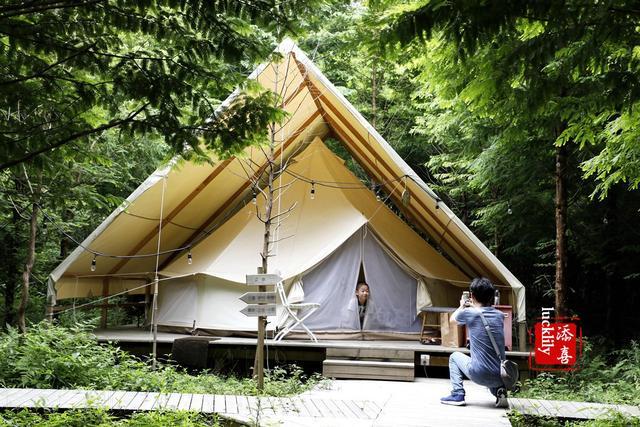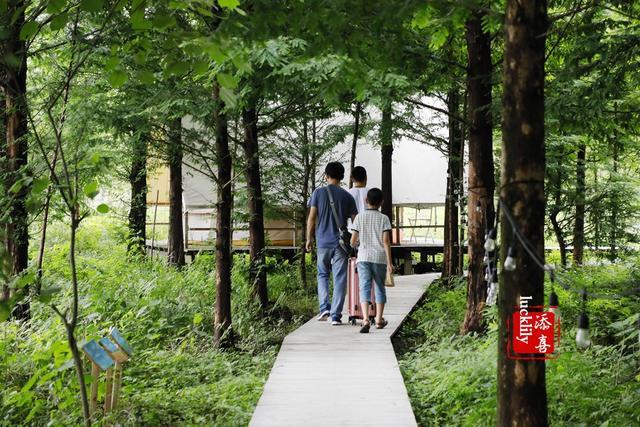 原来这些错落分布在水杉林里的帐篷都是豪华版的,有着蒙古包般的大小,上面还有顶篷遮阳防雨。