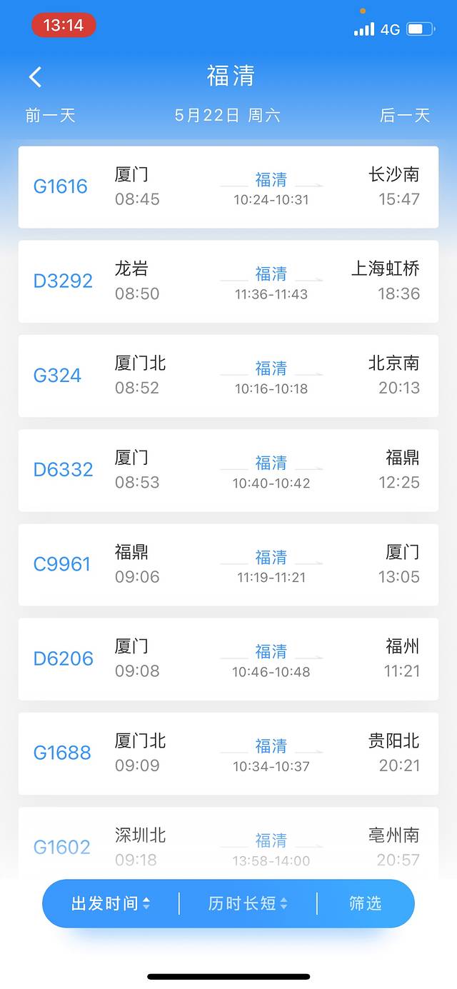 远至上海、南京、杭州、长沙、北京、贵阳、深圳、赣州,近至福州、福鼎、厦门、漳州、龙岩的小伙伴都可以很便捷的坐动车到达福清(福清办客列车车次见图,详细每日开行情况可登陆12306查询)