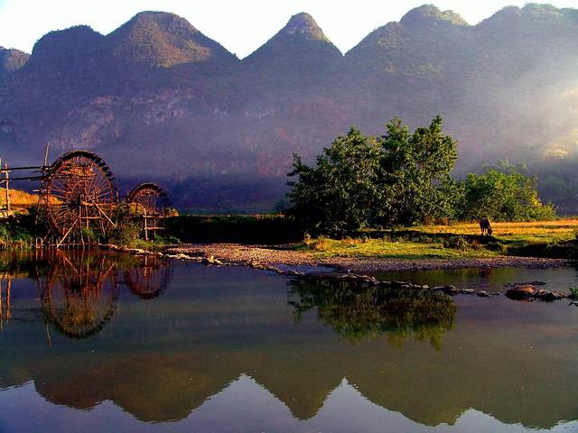 坝美村之中拥有很丰富的水资源,山峰也具有云南的特色,水质清冽是属于天然并且没有任何污染的,当地人说这里的说喝起来很甘甜,不过不敢去尝试。来到这里的话随手一拍便是最大的美景,除了自然风光以外这里还有很多船舶和马车,设计得十分美观看起来也很实用。