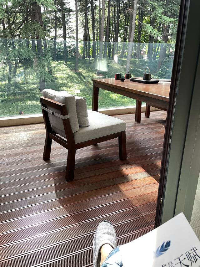 住的雅缦酒店(大唐不夜城店)—四合院园林景观房。房间位于二楼,有一个很大的阳台,可以坐在阳台的沙发上喝茶吃饭,阳台外面的view就是大雁塔公园,一片郁郁葱葱的绿,非常赏心悦目。