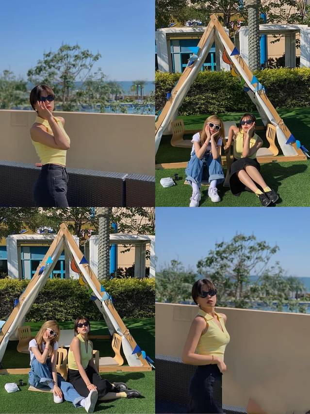 泳池边上的帐篷,绝了绝了,和姐妹一起拍,直接凹造型就完事了。