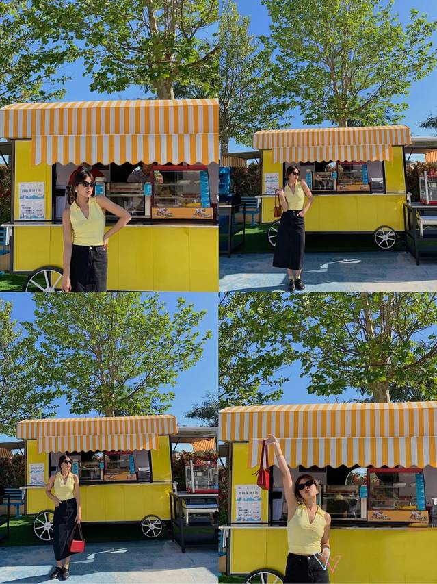 海洋剧场下面的黄色和粉色小餐车,超级出片,颜色好看!