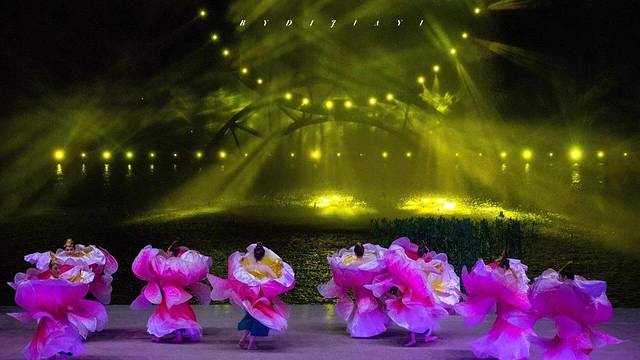 她们头顶斗笠脸上汗,腰背箩筐双脚迈。最后,整个故事在水幕光影中缓缓落幕,将安吉的白茶文化也融入其中,看完令人久久不能忘怀。