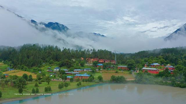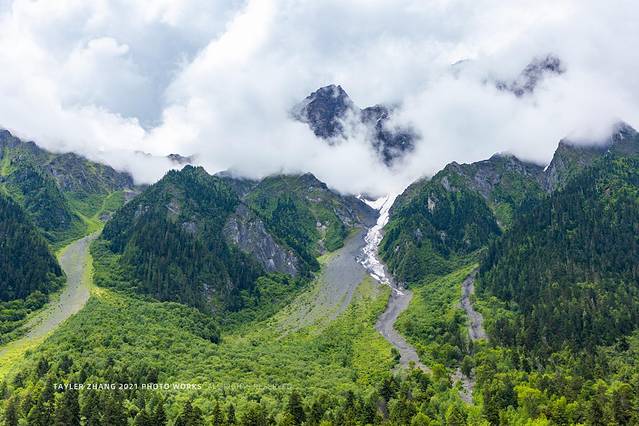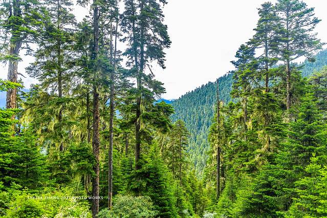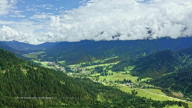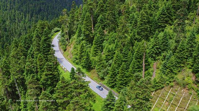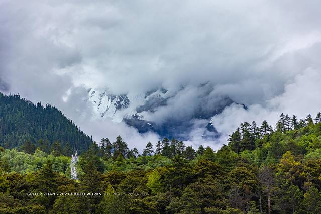 远处云雾中若隐若现的雪山,沿路的植被由草地灌木过渡到茂密的云杉和松树,真的让我有一种像在欧洲而不是在西藏自驾的错觉。