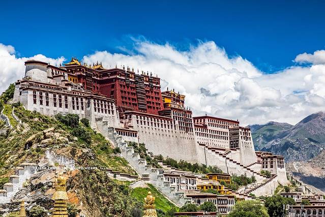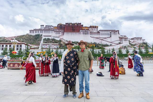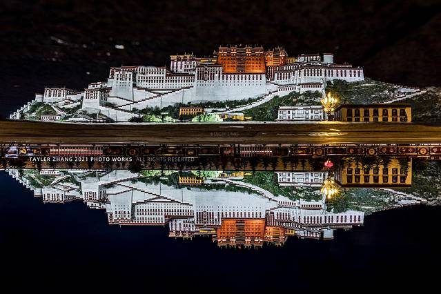 布达拉宫拍照小tips:去布达拉宫前的广场拍照时记得带上几瓶矿泉水,找好角度后将水倒在广场上做镜子,可拍出布达拉宫倒影照,夜晚布达拉宫灯光亮起效果更好。(如果我不提醒你,可能你都发现不了这张照片上面的是倒影,下面的才是实景)