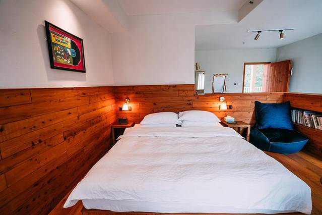 橙月黑胶唱片民宿的住宿风格比较偏小资文艺,酷爱黑胶唱片的老板在房间里设计了很多与之相关的小细节,颜值与情怀兼得。