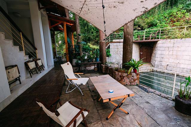 喜欢室内的静谧氛围,可以选择在客厅后面的院子,这里是聊八卦的绝佳空间,也是猫咪们的秘密基地,掀起桌布也许就能有惊喜哦!