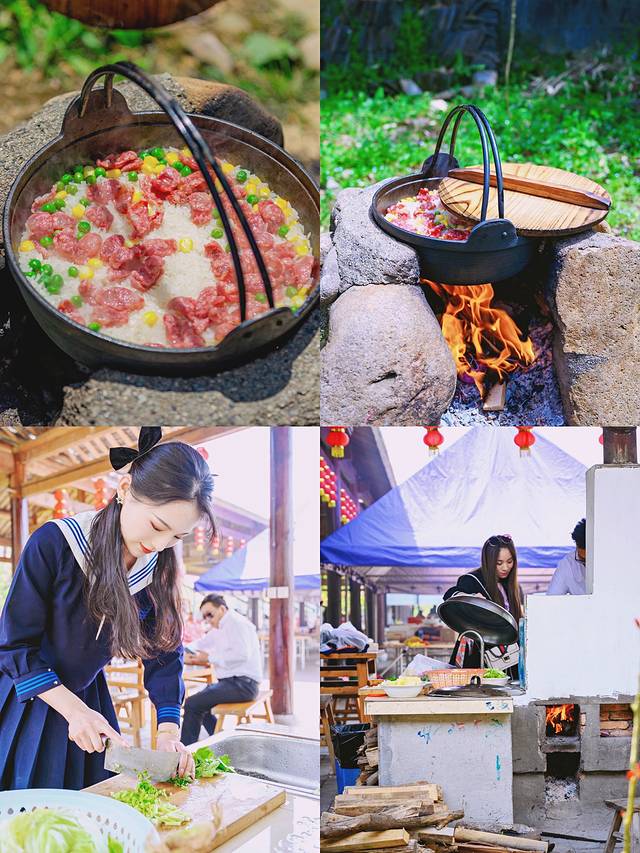 ▪️石锅饭和土灶台保留了原始的乡村气息,想要自己动手烧饭的小伙伴一定要试试土灶台,可以自己生火🔥、洗菜🥬、烧菜,想要体验小时候野炊感觉的小伙伴可以试试架在石头🪨上烧制的石锅饭