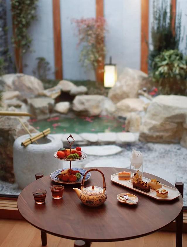 ✨【秋实】是室外均为相同类型的方形泡池,池旁布景精美👀体验日式私汤的美好