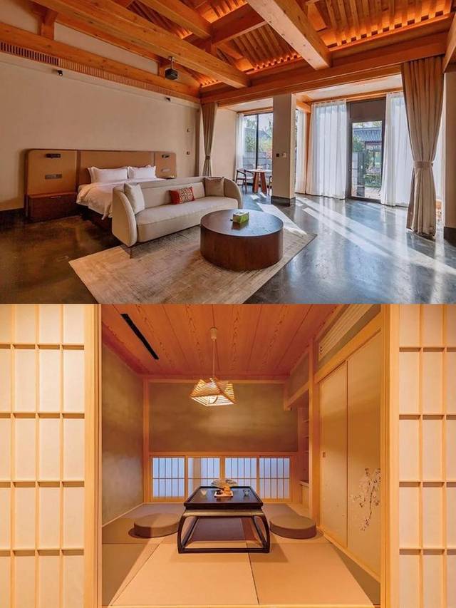✨【春华】配有室内室外双泡池👀庭院露天泡池为方形,采用原石铺就,造型独具个性。
