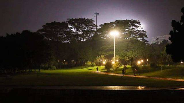 东江碧道真的特别适合散步,晚上来这里,有着与白天不一样的风情。不同于白天的喧闹,夕阳落幕后的东江碧道安静而清幽,虽然散步的居民也不少,但大多还是安安静静地享受着这份清幽。偶尔还会遇到架着吉他和麦现场弹唱的小年轻,吹着习习江风,听着清新民谣,享受着假期的悠然。