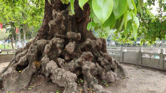这棵古树之所以出名,因为树龄已经超过一千年,名副其实的“老树王”,是目前东莞仅存的唯一千年古树。老秋枫差不多有四层楼高,要六七个人手拉手才能“抱”住他。
