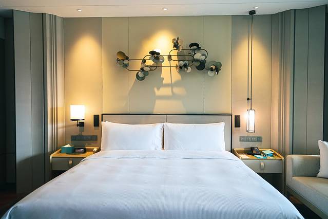 酒店的房间采用了时尚现代典雅的设计风格,搭配岭南风貌的空间元素,简约而不失大雅,精致又富有设计感。宽敞静谧的空间,为入住的宾客提供了一个舒适的睡眠环境,国际级酒店的配套自然不用再多提。床上还有酒店的精心欢迎摆设。