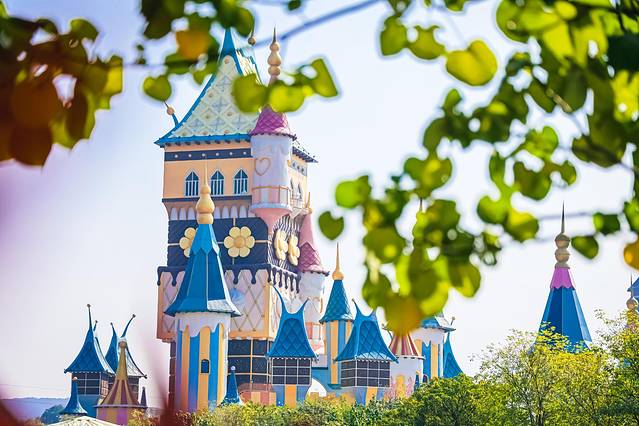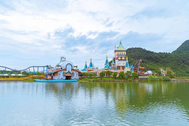 周末的一大早睿睿就打了鸡血似的早早起床啦,从广州自驾出发,2小时左右的车程,就到达了今次的梦幻城堡「奥园英德巧克力王国」,一座座的欧式城堡环湖而立,这一座座的欧式城堡建筑群与周围自然环境和谐的融为一体,让我们仿佛走进浪漫奇幻的童话世界。