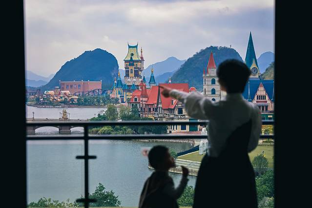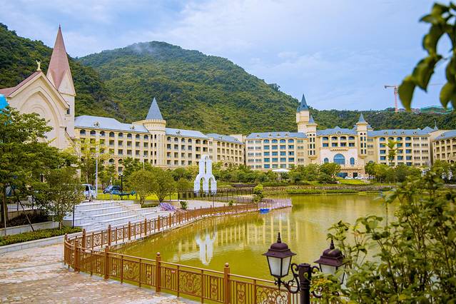 酒店位于由奥园英德巧克力王国内,在绿林山野和涟涟碧波之间,一座欧式城堡拔地而起;玛瑙蓝屋顶,淡黄色外墙,圆锥顶塔楼,融入具有深厚历史底蕴的英石元素,浑然天成的童话感扑面而来。