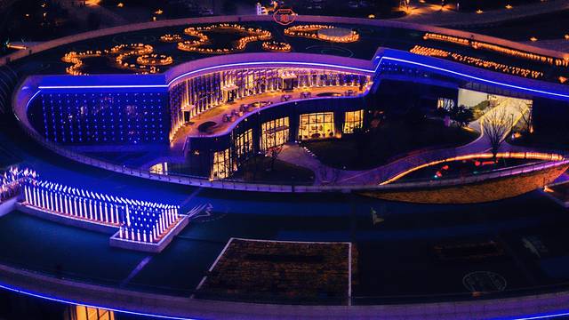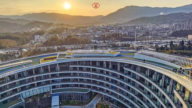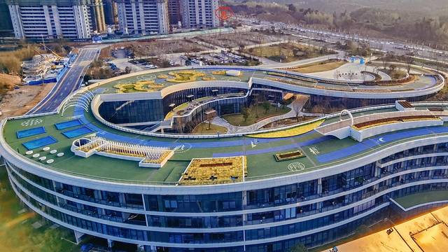 整个建筑就像一条蛟龙,已经足够吸精了,全景屋顶花园,可以从地面一直到顶层,观看日落和夜景,绝绝子。这样的设计可不是吹的,我国首个全屋顶星光大道,500米长网红坡屋顶,说的就是它。