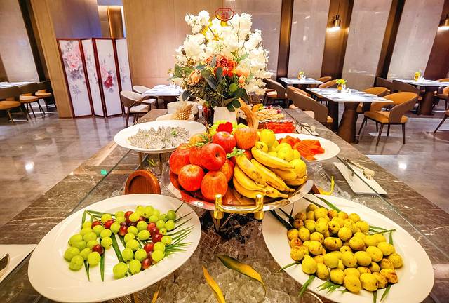 住在超五星度假酒店里,当然吃住泡都要在酒店里了,我们的三餐也是在酒店。早餐是自助,餐厅环境自然是很高大上的,我喜欢坐在落地窗边,光线和风景都在线。早餐的种类还是蛮丰富的,中式、西式的自助早餐都包含在内了,专门有一个区域是现场制作,尤其在这样的冬天,热乎乎的一碗面吃下去,浑身都是热热的,好温暖。推荐一下早餐的咖啡,味道还是蛮浓郁的,虽然都是机打的,但没有别家那么苦,口感上还是很可的。