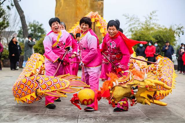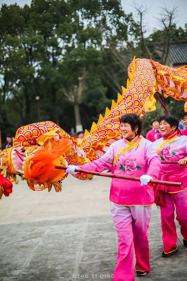 热闹的舞龙表演在穹窿山北门山门口进行,定睛一看都是阿姨妈妈们,果然巾帼不让须眉。