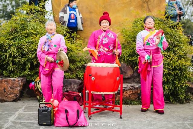 在表演的队伍中,还有年过花甲的老奶奶,但她们不畏严寒,在寒风中激情澎湃地给大家奏响新年的鼓乐声,真的是老当益壮。