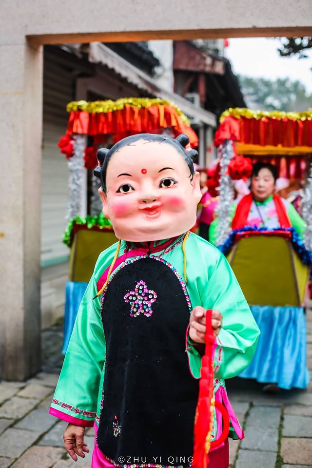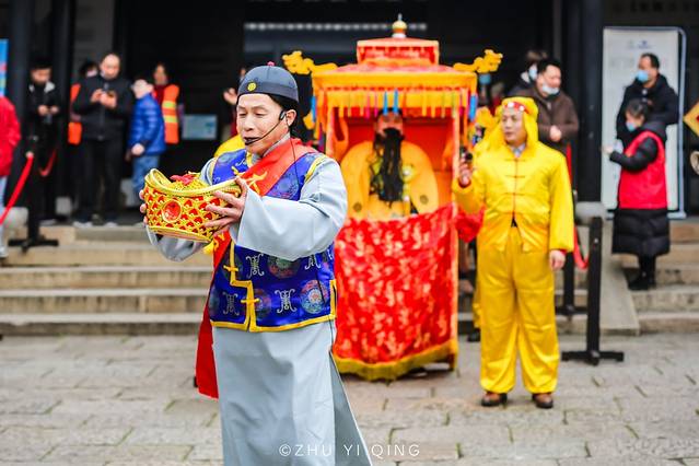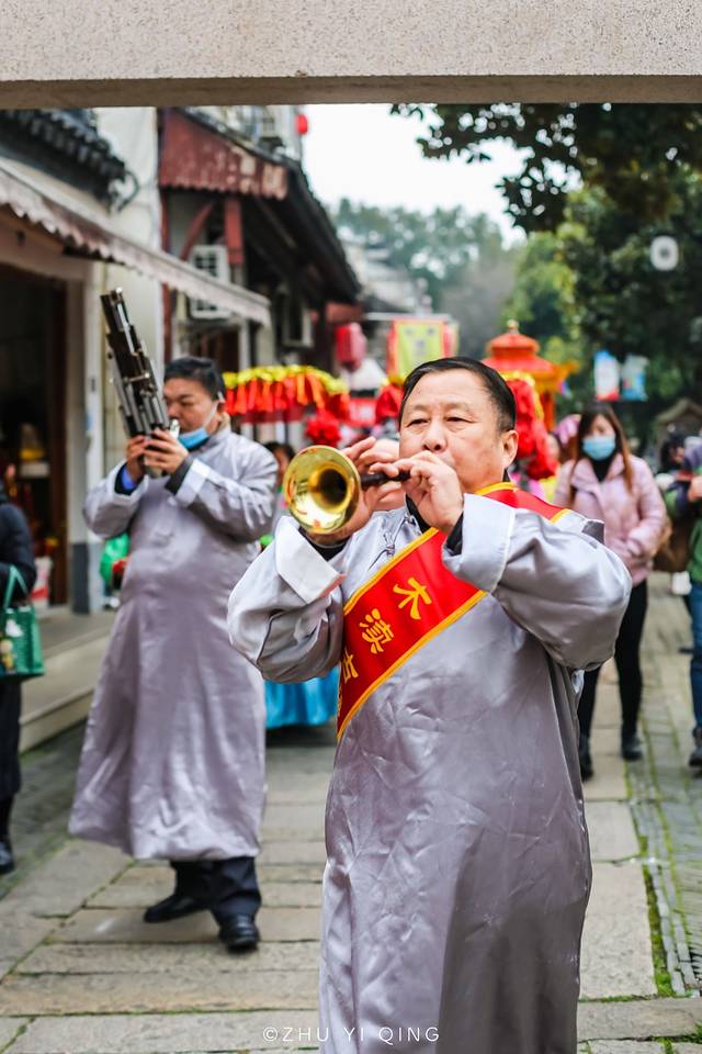 而木渎的新春年度大戏——抬城隍,城隍巡游也在古镇中掀起一番喜庆的氛围,城隍老爷“坐”着大轿,在开道锣的带领下与游客们见面,并带着荡湖船、蚌壳精、花篮姑娘等巡游队伍,沿着山塘街派送当地美食和新年福礼。