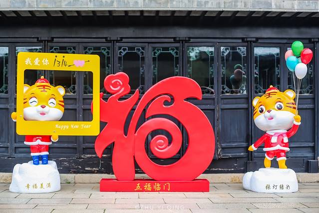 木渎古镇中各种各样的小老虎洋溢着热闹的新年氛围