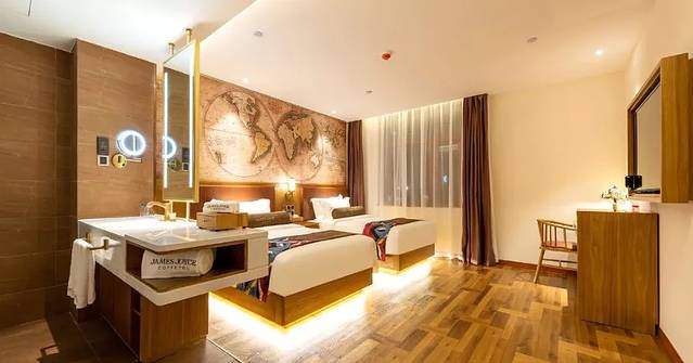 喆啡酒店是锦江旗下的中端酒店品牌之一,主打咖啡馆文化,每间房间配备一套手冲挂耳咖啡。酒店独门独院,院内自带停车场,从机场火车站自驾过来会很方便。基础房型18-20平,10月周末房价参考470元左右。