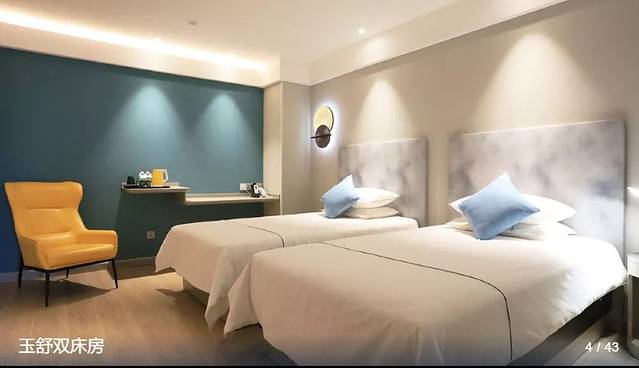 比起上述快捷酒店,这家白玉兰的房间配色算是顺眼了很多。放上这家没别的,离乐园3.8公里,打车5分钟左右。基础房型18-20平,10月周末房价参考440元左右。