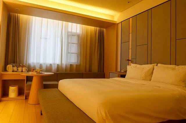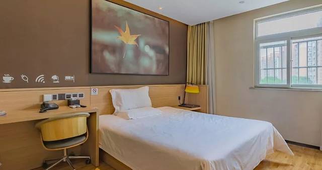 这家风格和全季有点像,但是床背后的装饰画就一言难尽了。基础房型18平,10月周末房价参考470元左右。