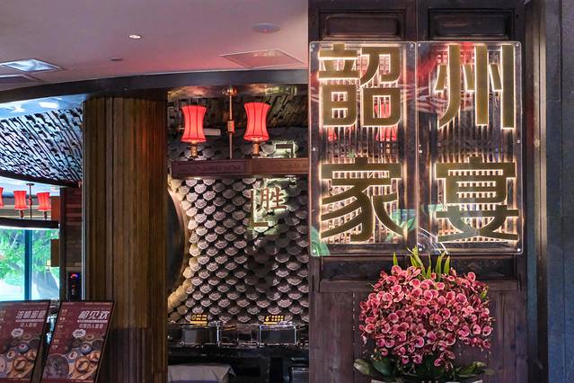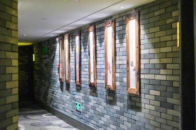 这家客家文化酒店在店面装修上,把每一个细节都布置的很到位,处处都向来人展示着客家风情。整店以极富时代标记性古代的客家特色青水砖、古色古香的老门板,全手工打的石雕、怀旧的家具、韵味无穷的客家油画、以前留下的石碓等等……沿路众多的客家文化缩影装饰,我犹如漫步在本地一个后现代的客家大院!