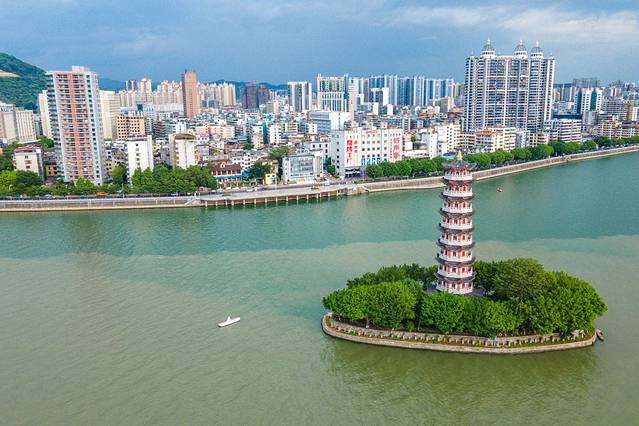 在韶关,有着这么一个熟悉又陌生的地方,它处于韶关市区武江和浈江的交汇之处,是韶关的地标建筑,却少有人接触过,这给它蒙上了一层神秘的面纱,它就是江心小岛上的——通天塔。
