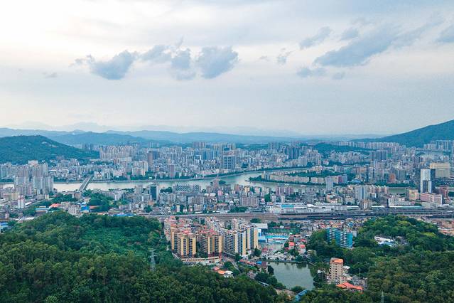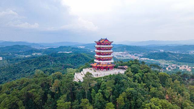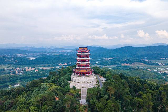 位于韶关的韶阳楼建于韶关国家森林公园莲花山顶峰,在这里可登高远眺韶关市区,视野绝佳,将三江六岸的景致净收眼底。