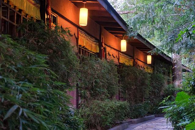 森林温泉区以现有的自然环境为中心,按照佛禅文化的仪轨和内涵,创造出依山而建、错落有致、别有洞天的自然环境和人文景观,处处体现人与自然,人与佛法地完美和谐,让人们在此尽情享受温泉、竹林、绿荫、禅意的佛化风光。