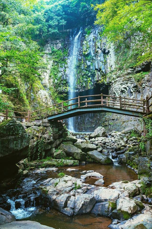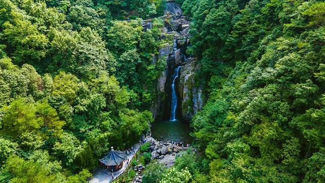 雪窦山景观非常多,三隐潭景区则是其自然山水风光最美的地方,由 上隐潭、中隐潭和下隐潭组成,也可视为三条瀑布,全长1600多米,景区入口在山上,沿着山路而下游览参观。