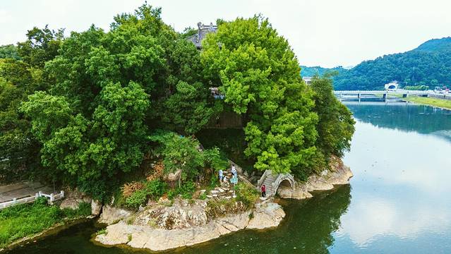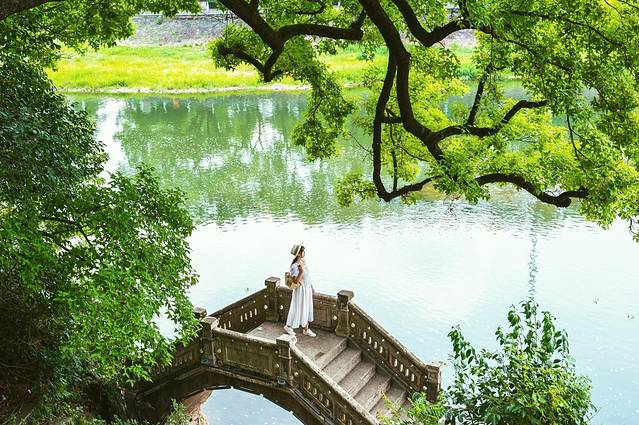 文昌阁前可沿石阶而下,这里有一座造型雅致的石桥,成了诸多游客拍照、纳凉的好地方,尤其是那造型奇特的古木与碧绿的江水,与石桥交相辉映,充满诗情画意的美景展现在人们面前。