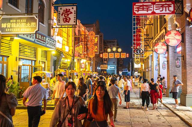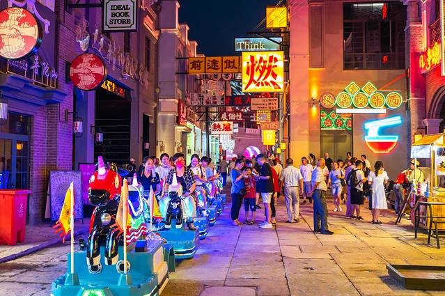 夜幕下的应梦里才是一天中最迷人的时候,狂人街上霓虹闪烁,游人络绎不绝,沿途可见众多网红打卡点,对于现今的年轻男女来说绝对极具诱惑力,随手一拍,就是一张复古与新潮相融合的大片。
