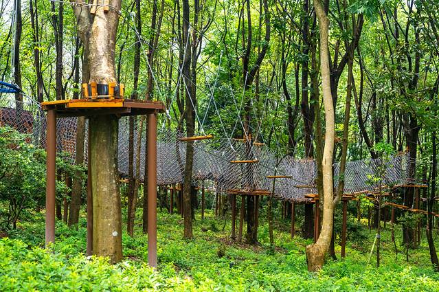 这是我第一次来这里,有一种误入“童话森林乐园”的感觉,在那葱郁的林木间,可以看到许多游乐设施,无论大人还是小孩子都非常适合游玩体验,尤其是丛林穿越,置身其中真的会给人一种丛林探险的感觉,这对于小孩子非常有好处,不仅锻炼了身体的灵活能力,增长了知识,开心也是最重要的。