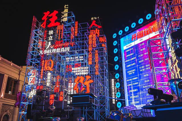 同时,应梦里景区是一家主打“夜游”的景区,当白天迎来黑夜,那一幢幢独栋建筑闪耀着五颜六色的灯光,光影变幻,霓虹闪烁,呈现出一场“赛博朋克未来世界”的视觉盛宴。