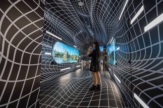 在通往时空门的过程中我们,还会经过一个魔幻的空间隧道,之后坐上“时空升降机”去到L47层,这是一个很“哇塞”的电梯,她被打造成了一个火箭,穿越浩瀚“宇宙”50秒后便登陆250米高空中的“火星”开启“火星”探索之旅。