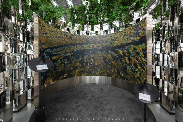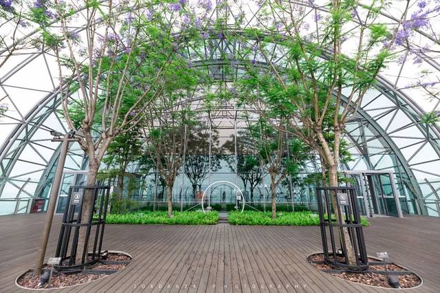走出太空舱,就是见证神奇的时刻,探索舱把“热带雨林”搬到了水晶连廊之内。整个连廊种植了110多棵高达9米的成年乔木,让你如穿越一般,弄不清到底是置身“天空”还是置身“热带雨林”?