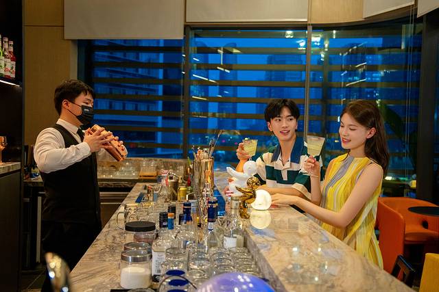 你以为只有这些活动嘛,酒店的餐食一样美味!延时到11点的早餐,种类丰富的早餐让你一整天都充满了活力。酒店餐厅还提供正宗的川菜,要是不想跑去下馆子,在酒店也能品尝到地道的川渝风味。五楼的迷雾酒吧一样很赞,各种酒类应有尽有,而且还可以品尝到现场特调的鸡尾酒,在享受微醺的时候还可以看到双子大厦的夜景,而且露台外的景色也非常的美丽,夜晚拍照打卡大片也很显得高级!