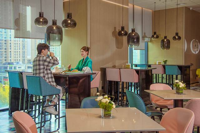 Mustel本身就代表了时尚与创意,酒店里面也处处体现了这种设计,无论是大堂,酒吧,咖啡花店,还是房间,都采用了丰富亮丽的色彩。从走进大门一直公区,都能感觉亮丽潮酷,时尚感一流,且兼具科技感。在预定平台看见Mustel的时候就觉得设计师很勇,不仅敢选用这么亮色系的颜色,还搭配的毫不突兀,属实有点厉害。